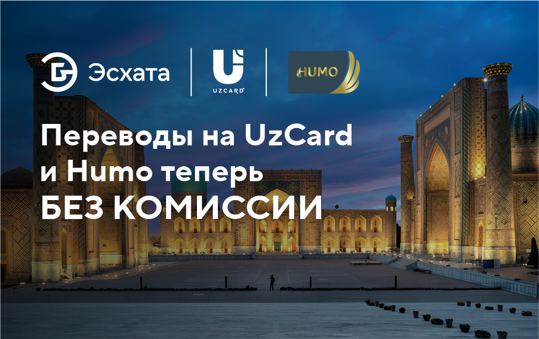 Теперь отправить деньги родным и близким на карты UzCard и Humo стало ещё проще и выгоднее. Клиенты Эсхата могут переводить деньги без комиссии.