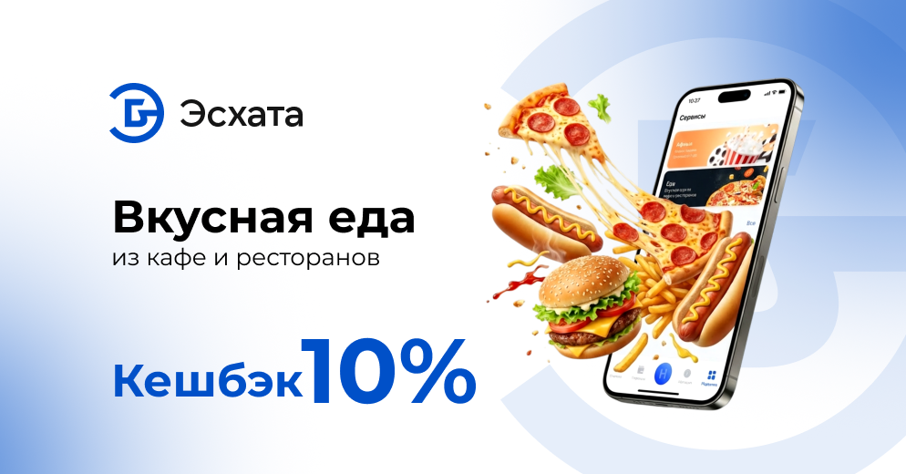 Мы запустили сервис «Эсхата еда»: выбирайте любимые кафе и рестораны, оформляйте доставку или самовывоз и получайте 10% кешбэк за каждый заказ.